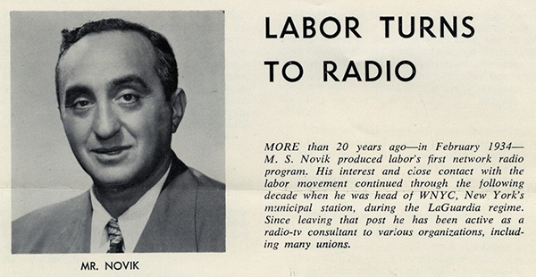Organized labor and educational broadcasters often found common cause in the US. Along with others, unions and educational broadcasters joined forces in the late 1920s and early 1930s to resist a regulatory paradigm that favored commercial radio. Yet, as documents surfaced through Unlocking the Airwaves reveal, the relationship between organized labor and educational television extended beyond forms of mutual solidarity. This exhibit explores that relationship through the work of Morris Novik, an NAEB leader who, in the 1950s and 1960s, was critical in negotiating relationships with trade and talent unions in the noncommercial television sector and in discerning how and to what degree labor would factor into the imagined public that educational stations would serve.